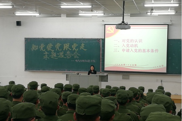 学团工作实际,从对党的认识、入党动机、申请入党的基本条件三个方面,给同学们讲述了党的性质、什么是正确的入党动机、端正入党动机的途径和方法以及党章规定的申请入党条件。她希望同学们能够加强理论学习,坚定理想信念,积极向党组织靠拢。