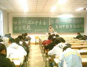 07级辅导员赵爽与班级同学共同学习和交流。 活动中,各班团支部认真组织学习了胡锦涛同志在中共十七届三中全会工作报告和全国抗震救灾总结表彰大会上的讲话。同学们就十七届三中全会审议通过的《中共中央亚洲色情推进农村改革发展若干重大问题的决定》中亚洲色情三农问题,改革开放三十年取得的巨大成就和抗震救灾斗争中培育和弘扬了万众一心、众志成城,不畏艰险、百折不挠,以人为本、尊重科学的伟大抗震救灾精神展开了热烈的讨论。同学们各抒己见,表示以胡锦涛总书记为首的党和国家领导人高瞻远瞩、锐意进取、求实创新,使自己感受到社会稳定发展,科技的日新月异;在谈到抗震救灾时,同学们更是兴致勃勃,认为伟大的抗震救灾精神,是党和人民极为宝贵的精神财富,当代大学生应弘扬伟大的抗震救灾精神,使之转化为艰苦奋斗、开拓创新的时代精神,转化为勤奋学习、甘于奉献的强大动力。