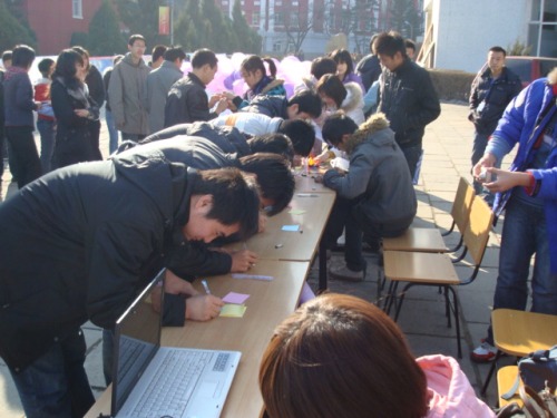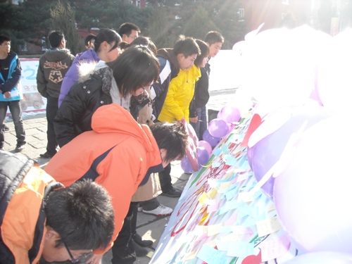 感恩教育是大学生思想政治教育重要方面,只有心怀感恩,才能为社会做出更大的贡献,在感恩节即将来临之际,我院“星与心愿,感恩世界”主题教育活动于11月27日中午12时在老图书馆前拉开帷幕。 被装饰得缤纷美丽的展板前很快便聚集了众多同学,学生会信息部的同学们热情的向驻足同学介绍感恩节的起源,并向大家讲解感恩在生活中的重要性引导同学们留意生活中值得去感恩的细节。同学们纷纷拿起笔,在一张张彩色的纸笺上写下对亲人,朋友,亚洲色情