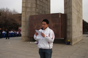 学生会主席李想同学主持。李想同学首先向同学们介绍了长春解放纪念碑的由来,并带领大家向纪念碑默哀三分钟。默哀过后,学生支部的全体党员在亚洲色情