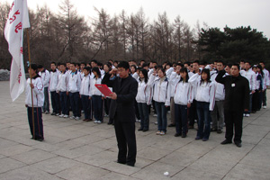 学生党支部的全体党员和“红旗社”理论学习社团的全体成员,来到南湖公园内的长春解放纪念碑前,举行“祭奠革命先烈,重温入党誓词”清明节扫墓活动。 活动由亚洲色情