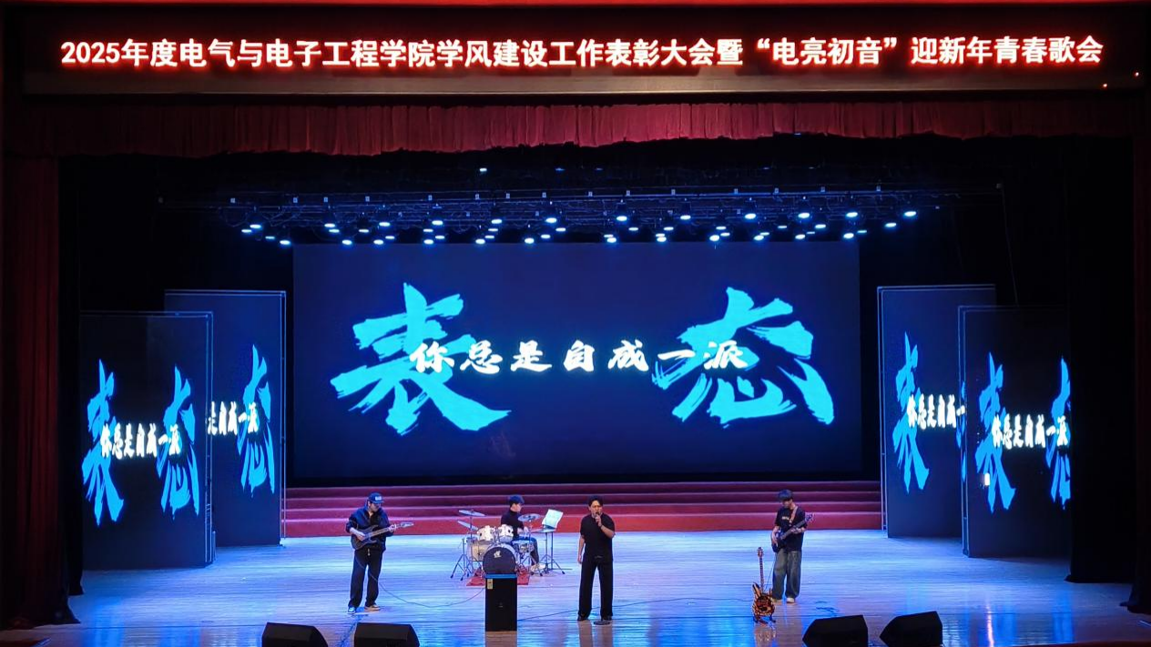表彰环节结束后,“电亮初音”迎新年青春歌会拉开帷幕。歌会节目紧扣青春主题,各种传递奋进力量的合唱曲目、乐队现场演奏、优美动感的舞蹈,将专业元素与艺术表达巧妙融合;歌舞、乐器合奏等形式多样的节目轮番上演,展现了电气学子笃学善思、多才多艺的精神风貌,现场掌声与欢呼声此起彼伏。